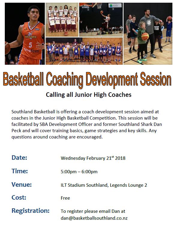 Pre-registration would be appreciated to allow for the preparation of training materials. Please register your interest with Jill Bolger – 2112254 or 027 315 4769 email jill@basketballsouthland.co.nz